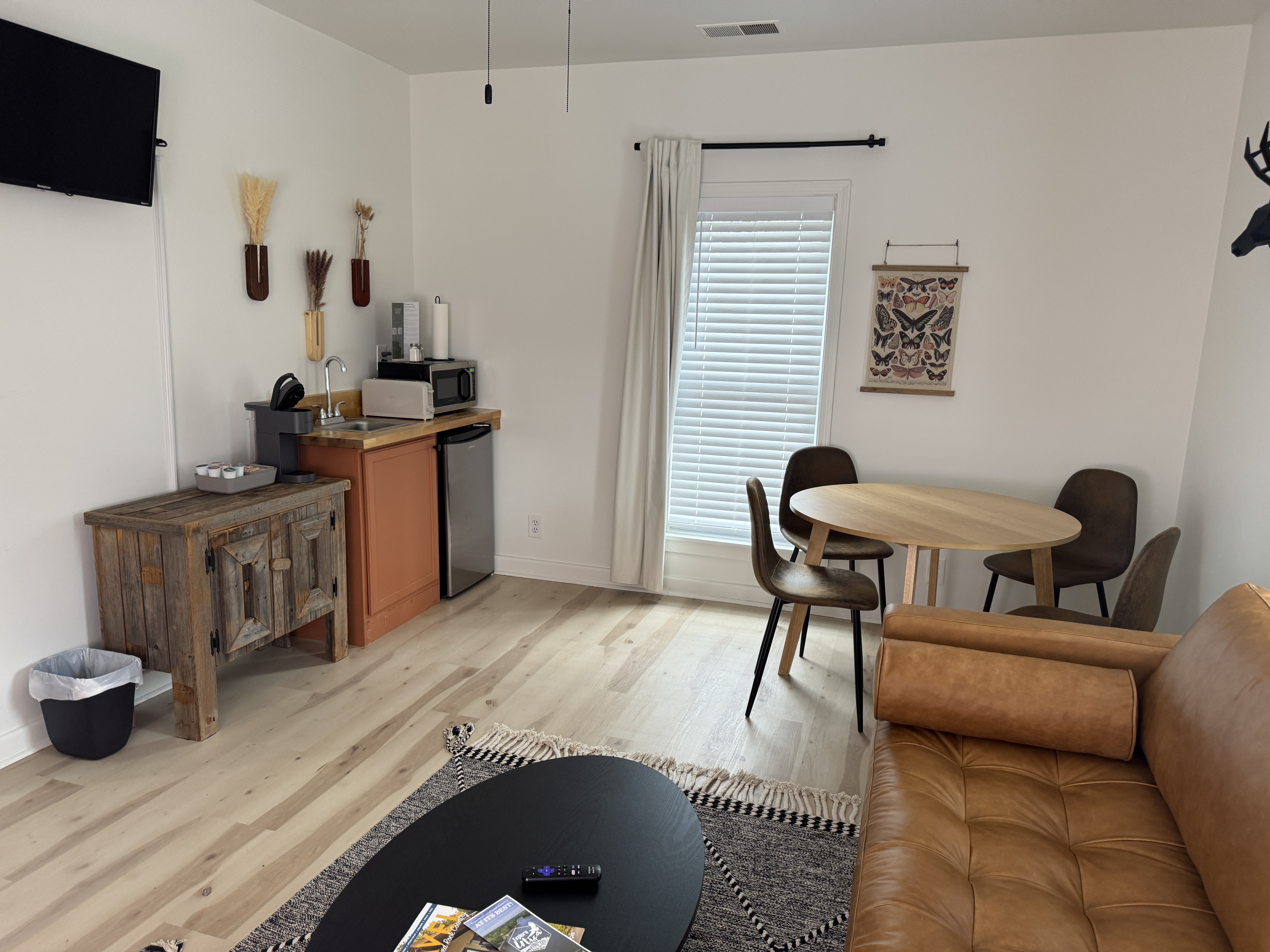 Smart TV in bedroom Microwave Minifridge Keurig Shared fully fenced courtyard with firepits Free Wifi Located on the 2nd floor with some stairs